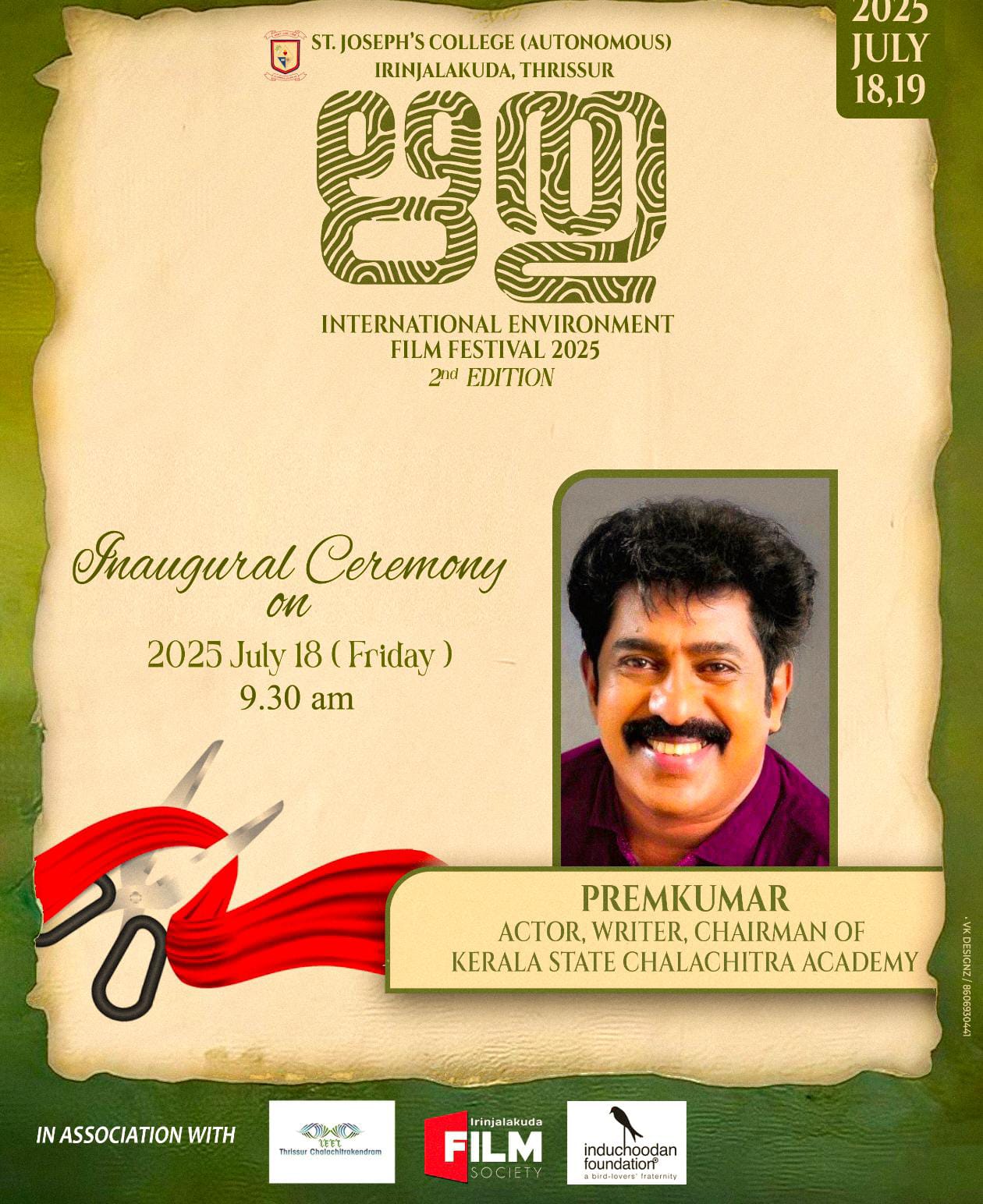 ജൂലൈ  18 രാവിലെ 9.30 -രണ്ടാമത് ഇരിങ്ങാലക്കുട അന്താരാഷ്ട്ര പരിസ്ഥിതി ചലച്ചിത്രമേളയുടെ ഉദ്ഘാടനം ഇരിങ്ങാലക്കുട സെൻ്റ് ജോസഫ്സ് കോളേജിൽ . ഉദ്ഘാടനം ചലച്ചിത്ര അക്കാദമി ചെയർമാൻ പ്രേംകുമാർ