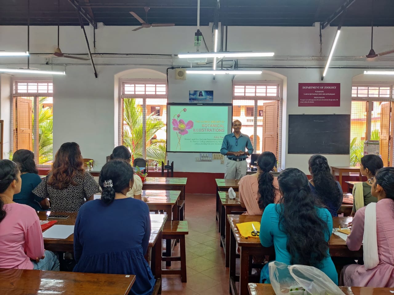 The resource person for the workshop was Dr. Joby Paul, Assistant Professor and Research Guide at St. Thomas College (Autonomous), Thrissur. He conducted an engaging hands-on session, guiding students on the techniques of botanical illustration.